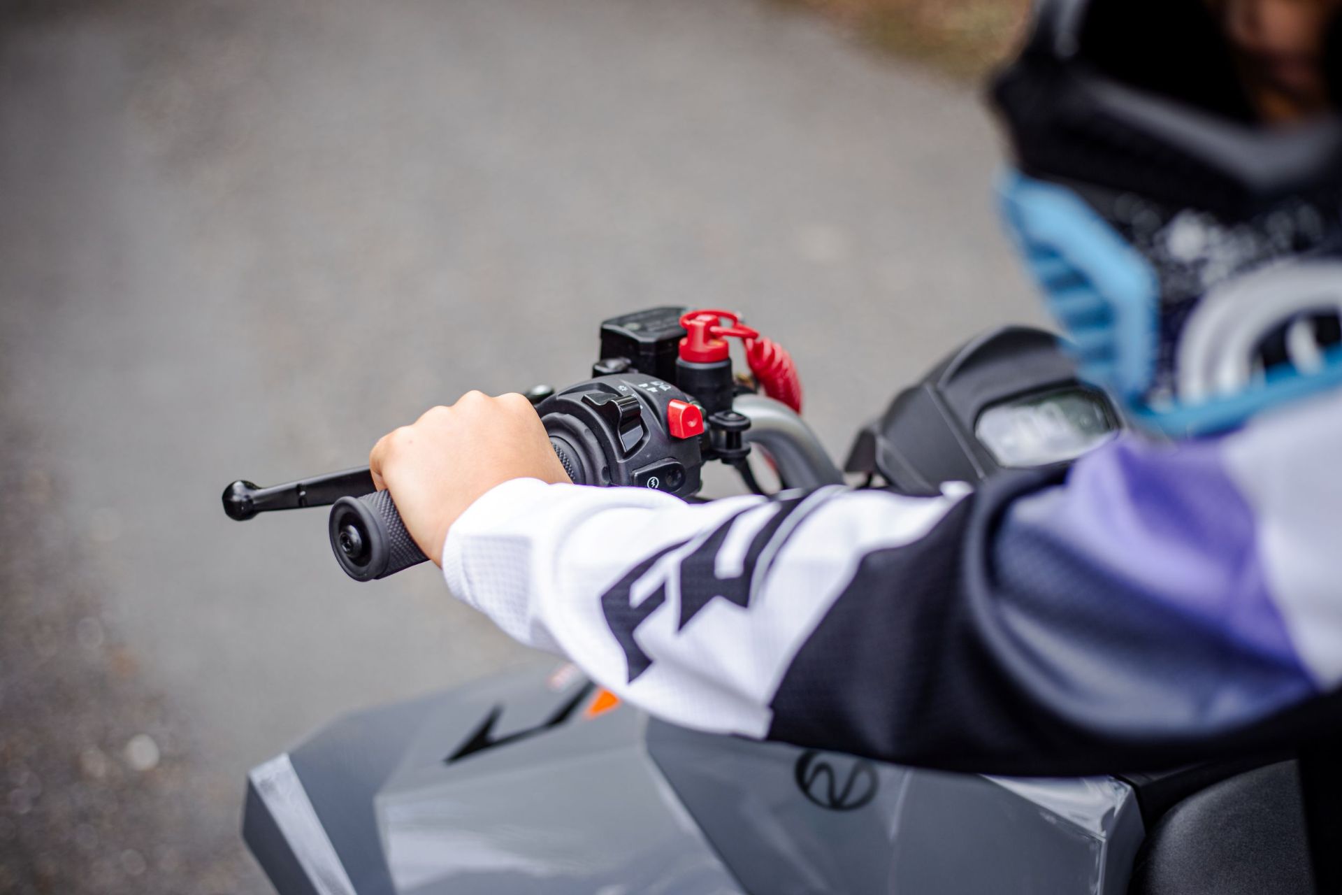 Linhai 110 oferă schimbarea clară și ușoară a vitezelor, cu levierul amplasat convenabil pe partea dreaptă, la îndemâna copilului. Sistemul permite trecerea rapidă între mers înainte, marșarier și neutru, fără efort. Pentru siguranță suplimentară, ATV-ul este echipat cu un sistem magnetic care oprește imediat motorul dacă juniorul se ridică de pe șa, reducând riscul de accident. Pentru începători, reglajul mecanic al accelerației limitează puterea motorului și viteza maximă, astfel părinții pot adapta ușor comportamentul ATV-ului la nivelul de experiență al copilului, oferindu-le liniște sufletească și protecție.