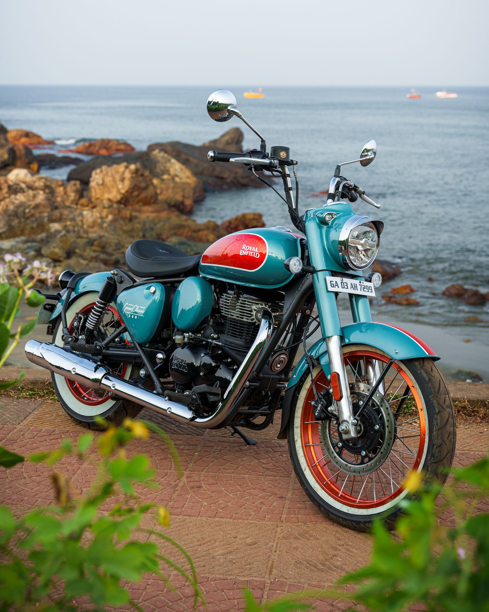 Inspirat de creațiile îndrăznețe și minimaliste ale constructorilor de modele custom din Goa, Goan Classic 350 preia spiritul unui bobber și îl îmbogățește cu aripi scurtate, anvelope cu flanc alb și o explozie caleidoscopică de culori. Acesta este modelul Classic așa cum nu l-ai mai văzut până acum.